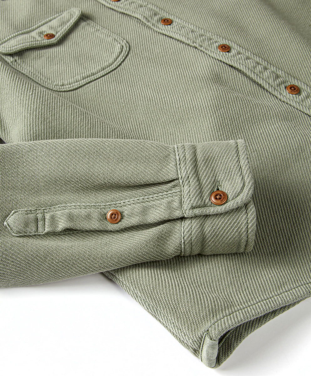 - Chest pockets with button flap pockets and an organic cotton yoke.
