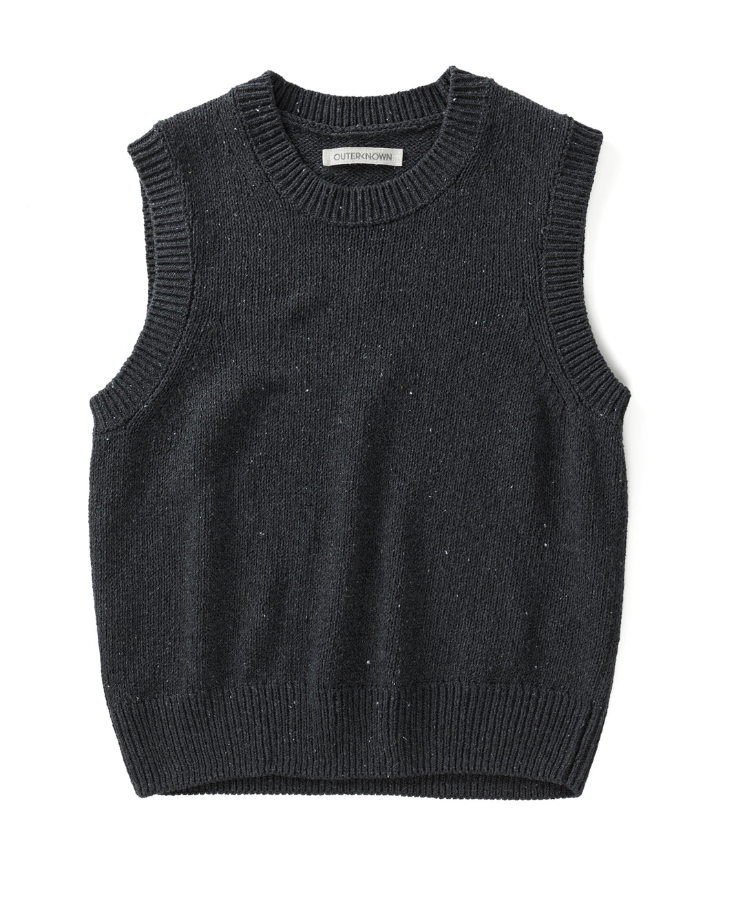 Details include rib neckline, armhole and hem finish.