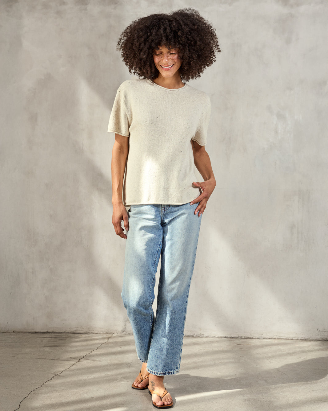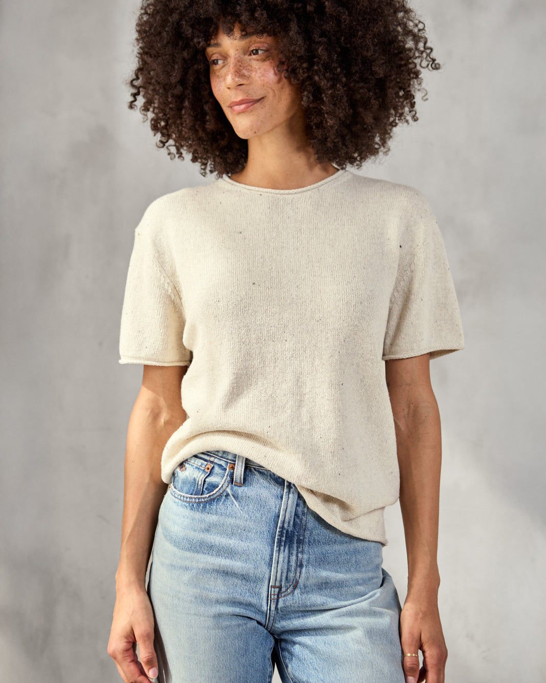 - Loose knit tee that elevates your favorite t-shirt and jeans look.