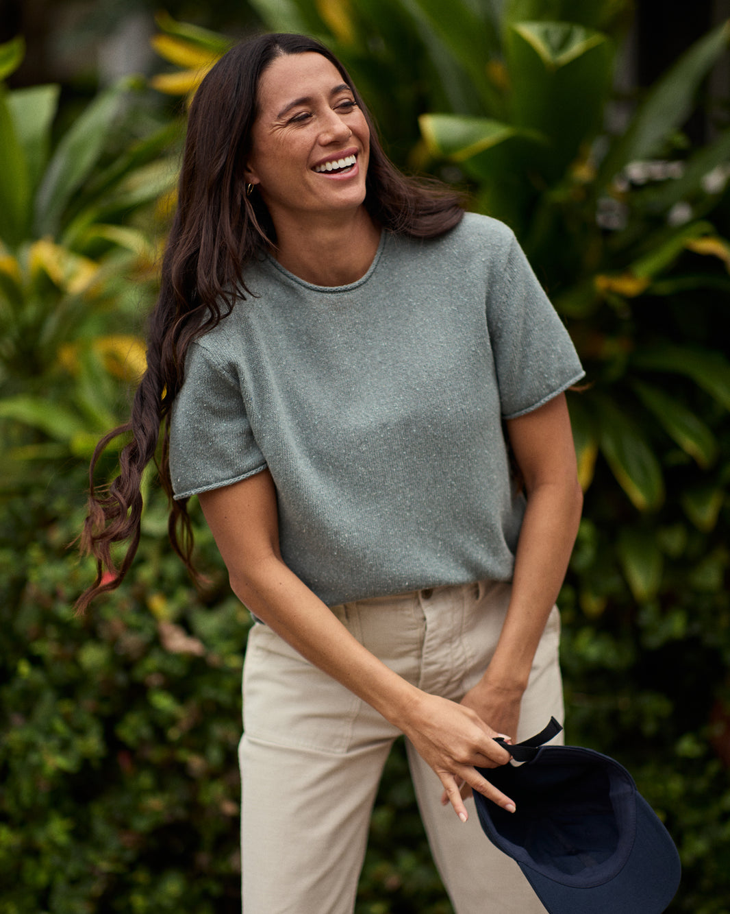 A simply effortless throw-on-and-go knit tee for those transitional temperatures. Made from a blend of recycled cotton denim scraps that gives this essential its unique texture and unbelievably soft hand-feel.