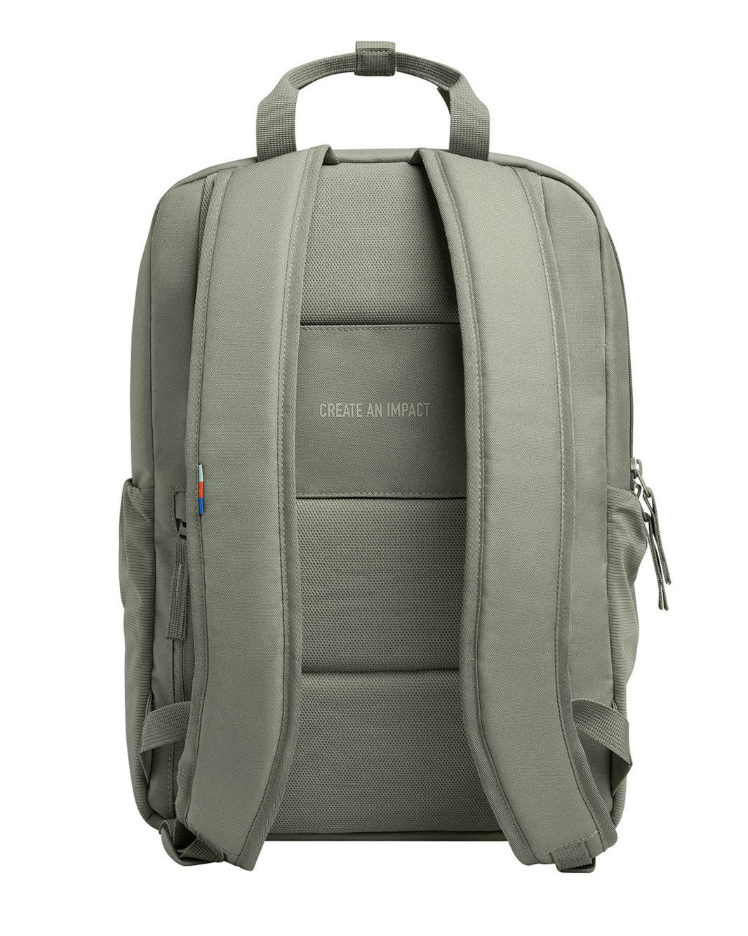 Product composition: 60 % Ocean Impact Plastic fabric, 20 % other recycled material, 20 % non-recycled materials (zipper, foam, buckles)