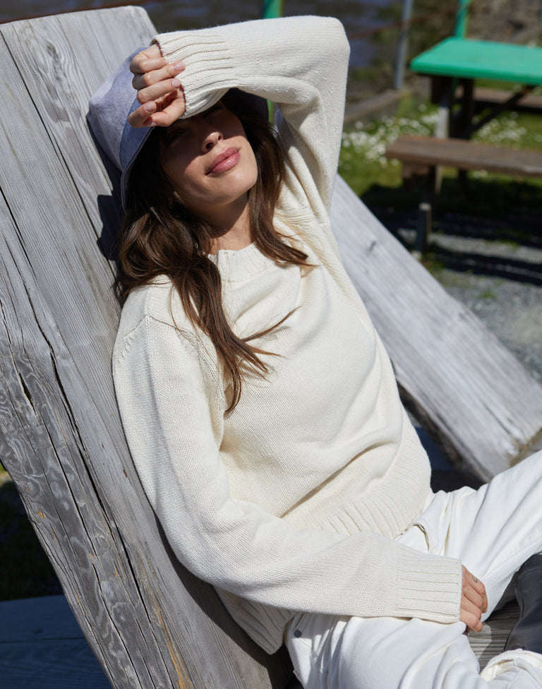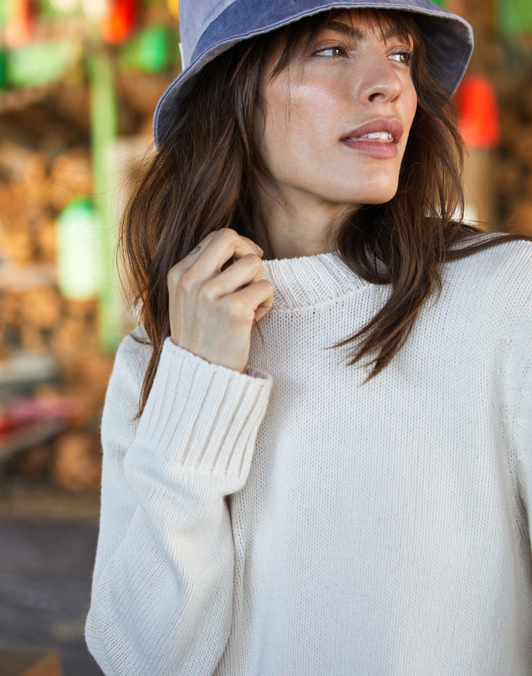 Made sustainably with the softest 5-gauge Italian organic cotton and recycled cashmere yarn.