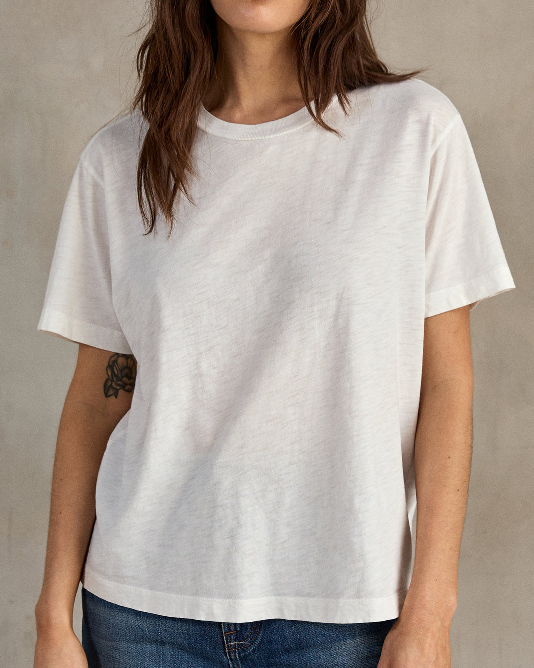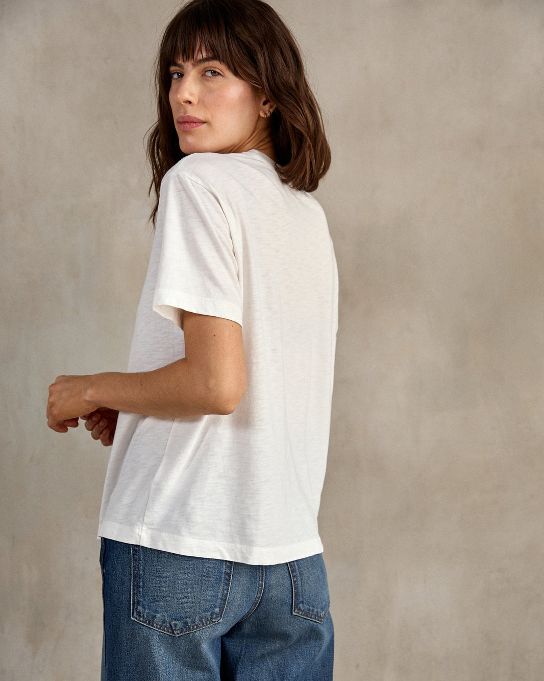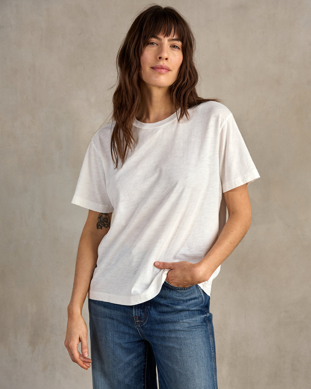 Finally, our iconic super soft slub texture in a Women’s tee. A year-round closet staple you'll have on heavy rotation. Crafted with Regenerative Organic Certified® cotton for a perfectly worn-in look and feel the moment you throw it on.