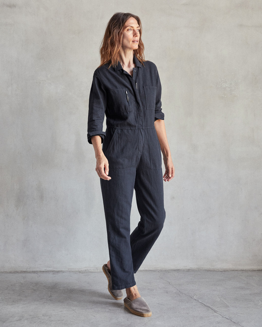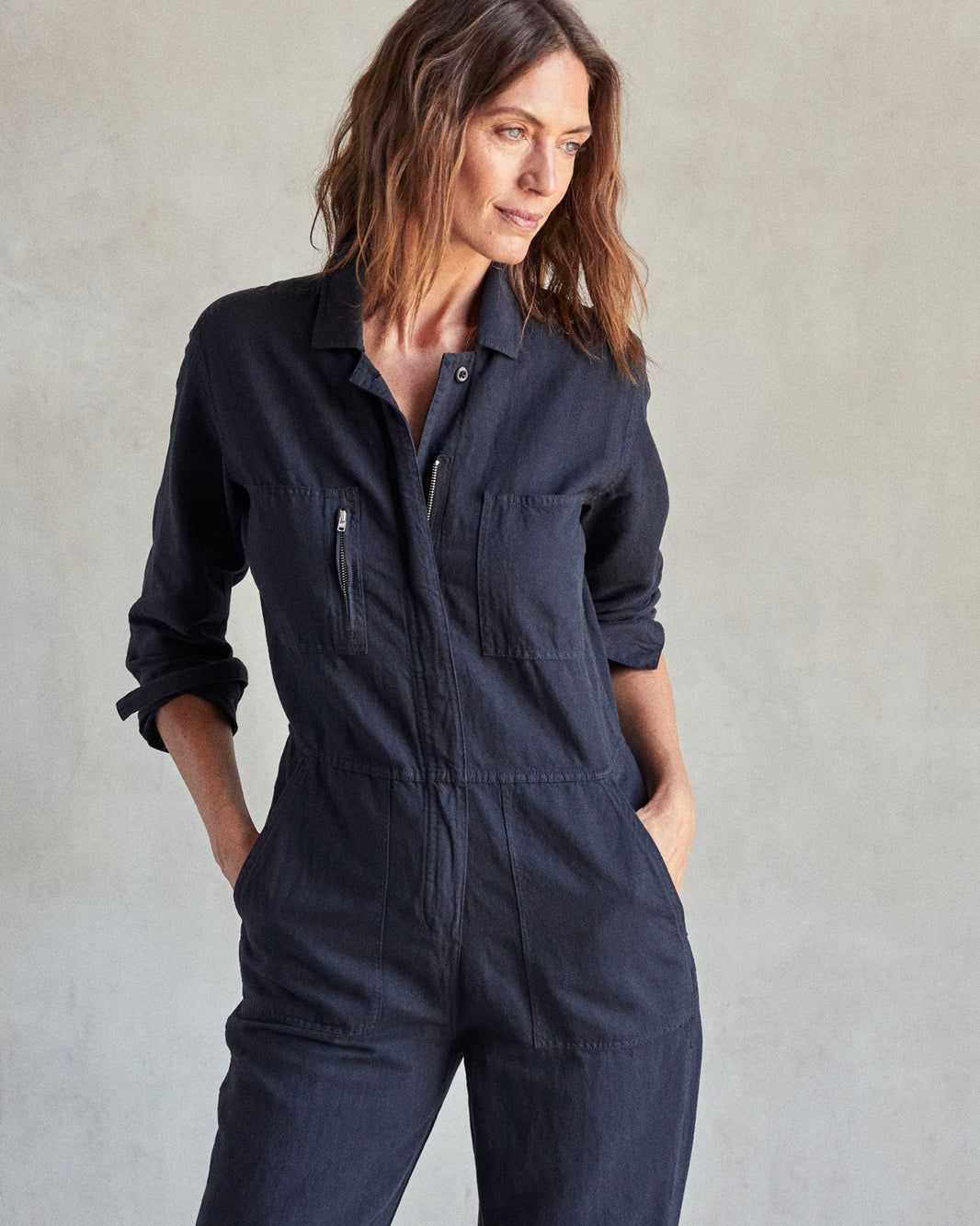 You won't find an easier outfit than this no-fuss jumpsuit that gets you dressed and out the door in seconds. An effortless 5-second outfit with all the utilitarian versatility for any outing.