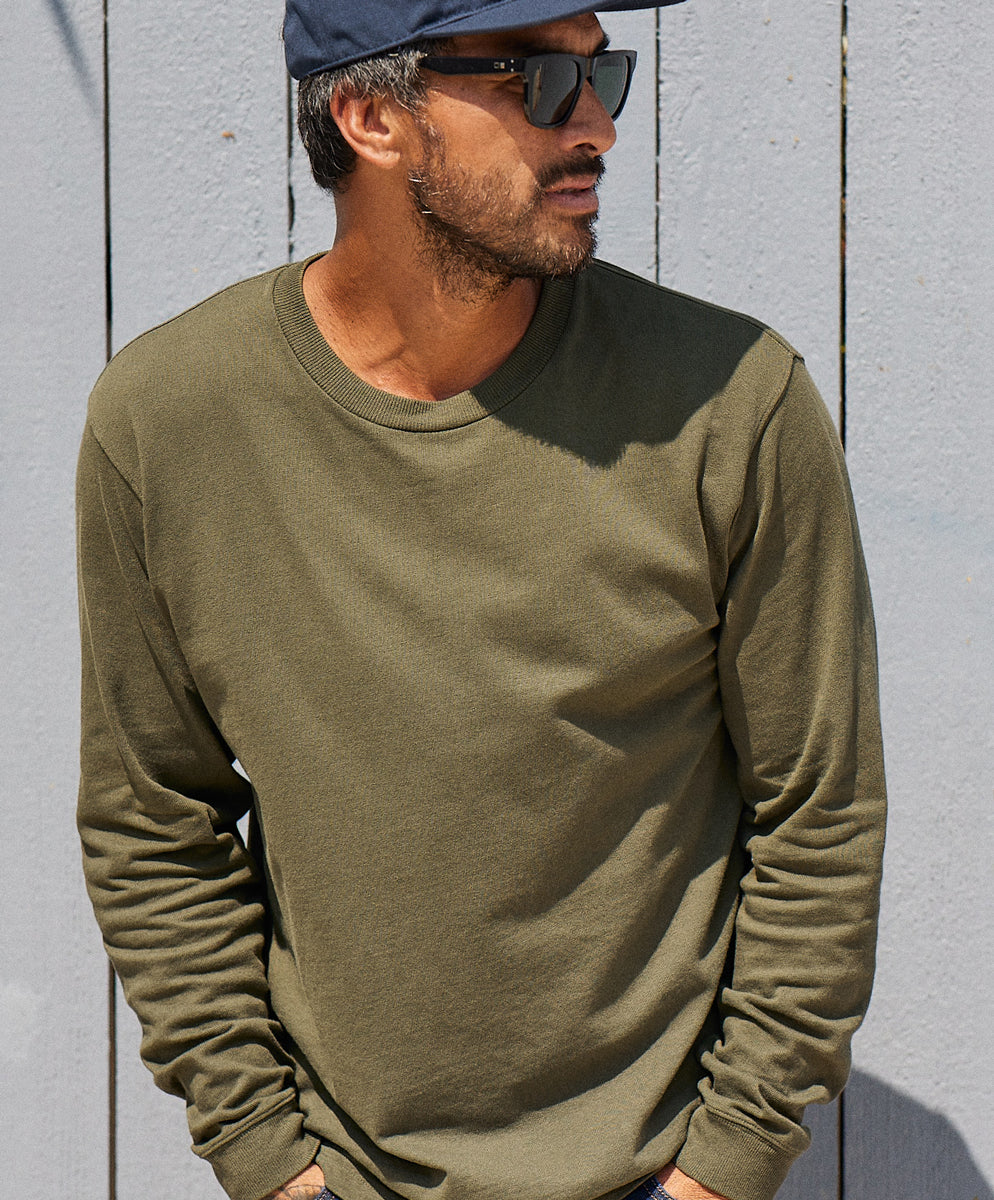 - Heavyweight jersey with a ribbed neckline and cuffs.