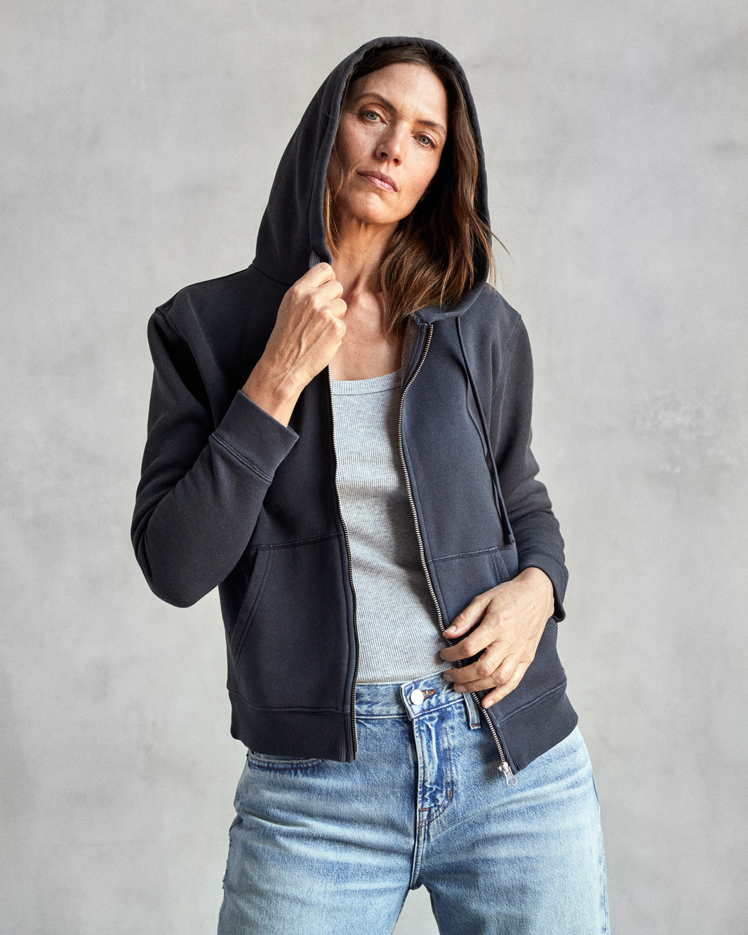 A classic self-lined zip hoodie with drawcords and kangaroo pocket.