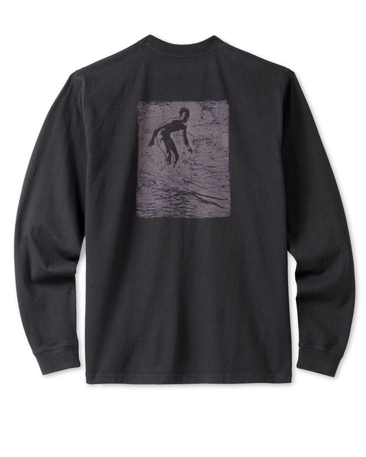 The artwork and images that enticed visitors to experience the inspiring allure of Waikiki's beaches pre-1935. Pan Am began offering commercial service to Hawaii in April of 1935. Before then, ocean liners could take you there, and this “Hawaii direct from Los Angeles” artwork adorned one of their brochures. The woodblock print on the back was illustrated in books of the time and looks like it was created from one of Tom Blake’s photographs.