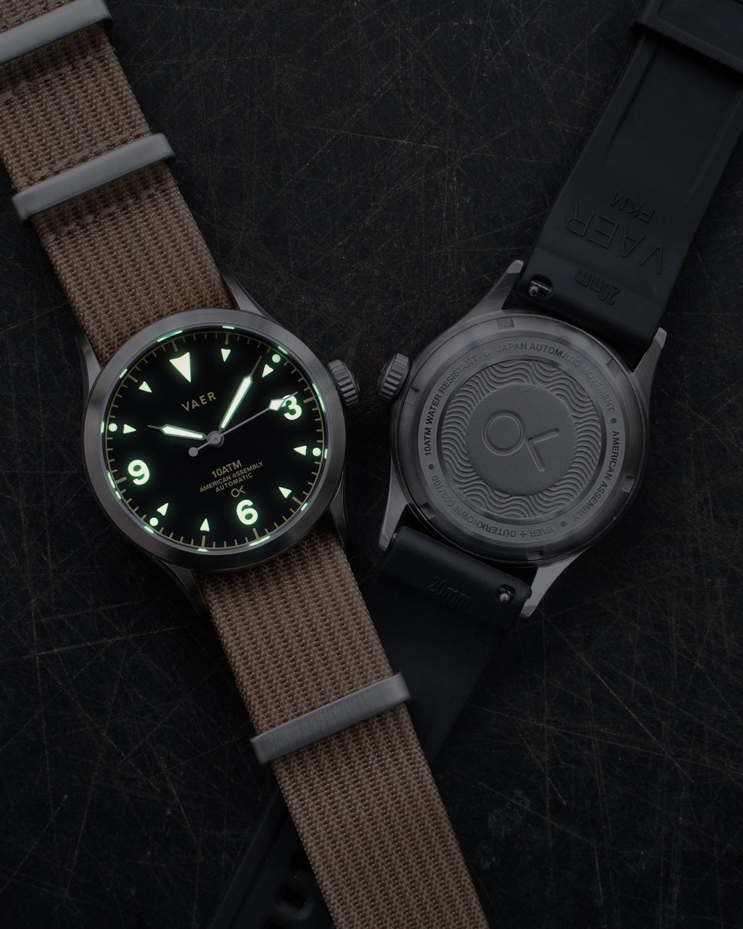 The Vaer A3 Tradition Outerknown channels the spirit of adventure and timeless design of the 1950s field watches. Carrying the proportions and design language of a vintage classic, this USA-assembled field watch is infused with modern durability features, making it the ultimate daily wearer for any occasion or environment.